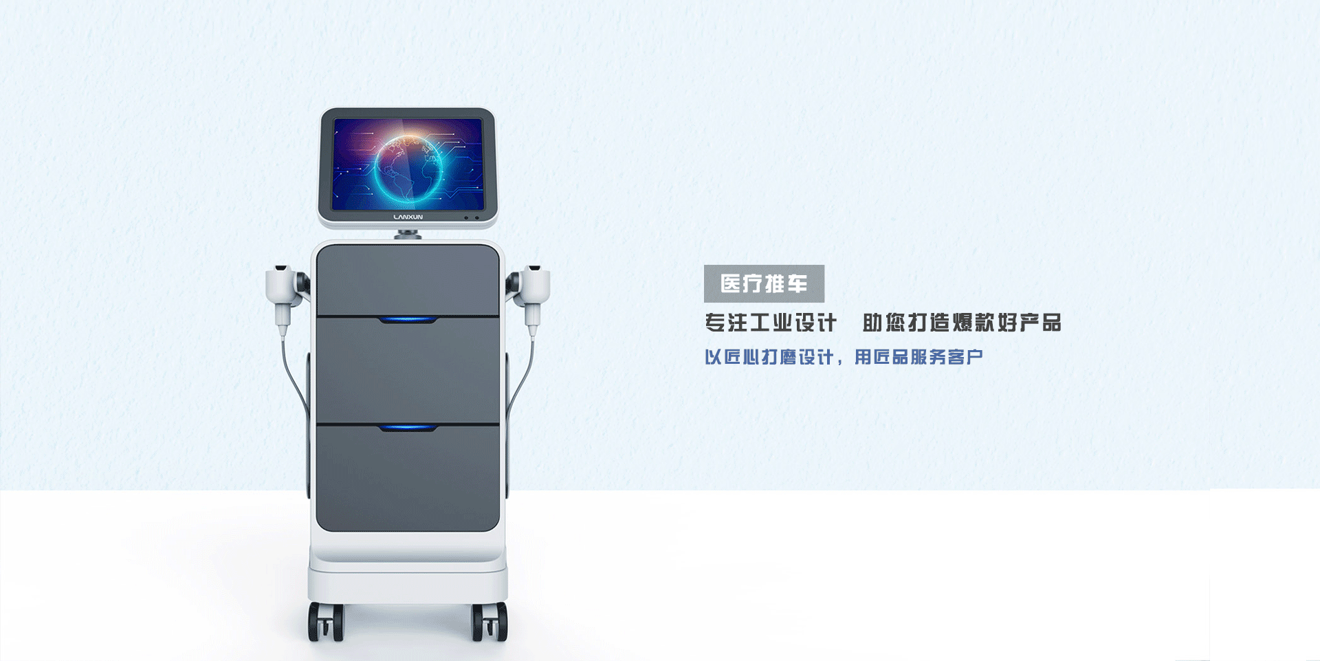 設計賦能醫療領域,解決推車線纜收納問題,整體集合式設計,讓整個推車更緊湊輕巧。——匠品設計