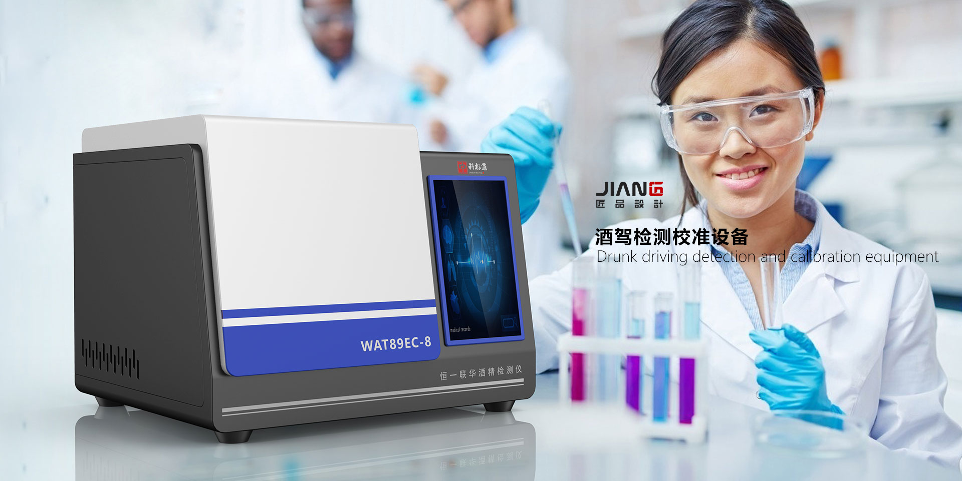 酒駕檢測校準設備的設計黑色與白色相結合,符合現在工業設計的簡約風格,在總體布局方面滿足整體需求,以直線和曲線線條的結合,更加體現出了視覺上的美觀大氣。