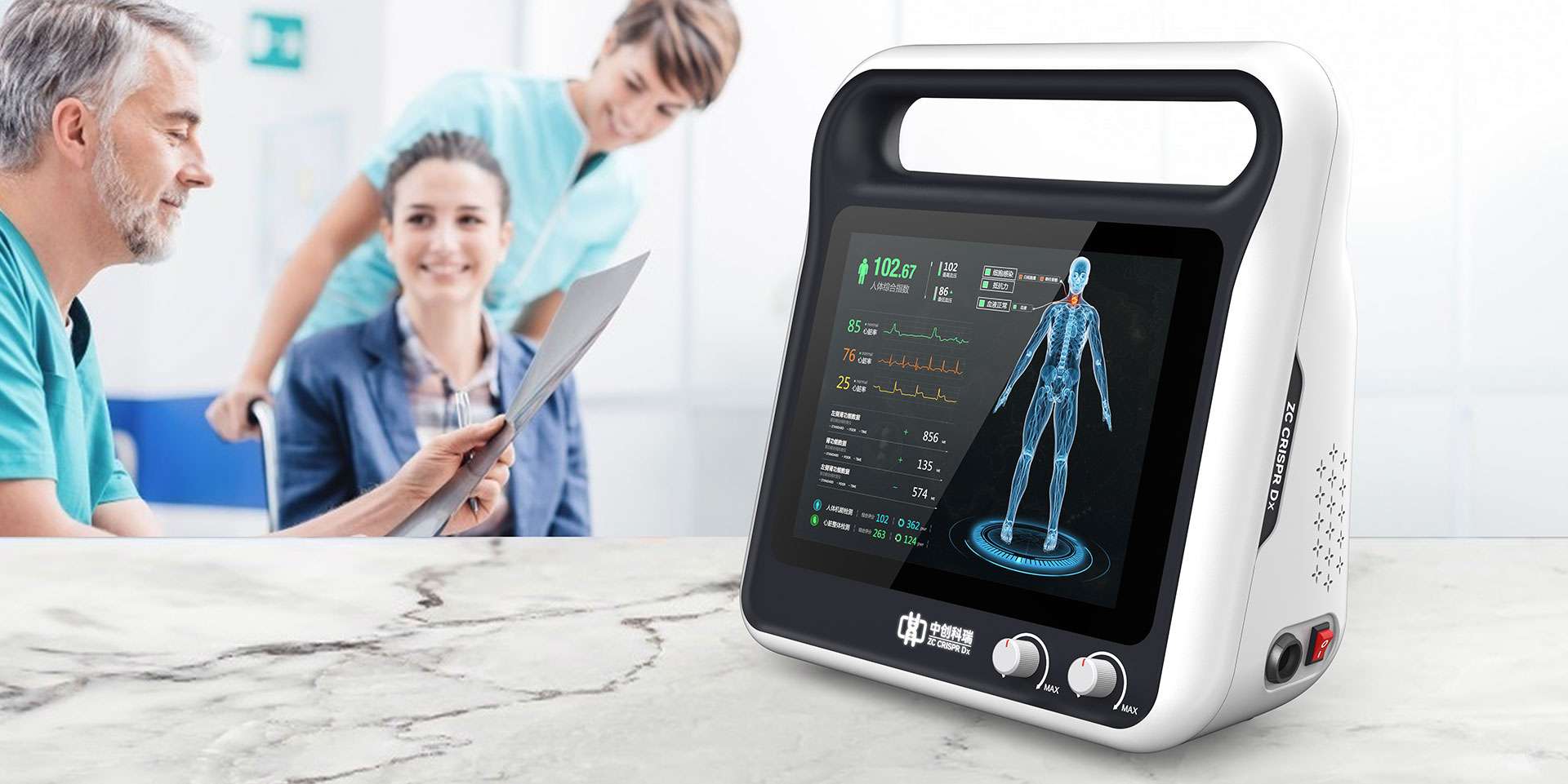 設計時我們采用經典的幾何圖形來達到醫療產品簡約的外觀,恰到好處的圓角增強了產品的柔和感和親和力,外觀融合了專業理性的風格與極簡主義風格。白色外殼分為前后兩部分,頂部的黑色手柄可以采用硬質硅膠制作,優化了人機操作,使抓握更加便攜。在滿足后排懸掛功能和電池更換的前提下,進行集中造型封裝處理,突出簡潔、柔和、合理的設計特點。