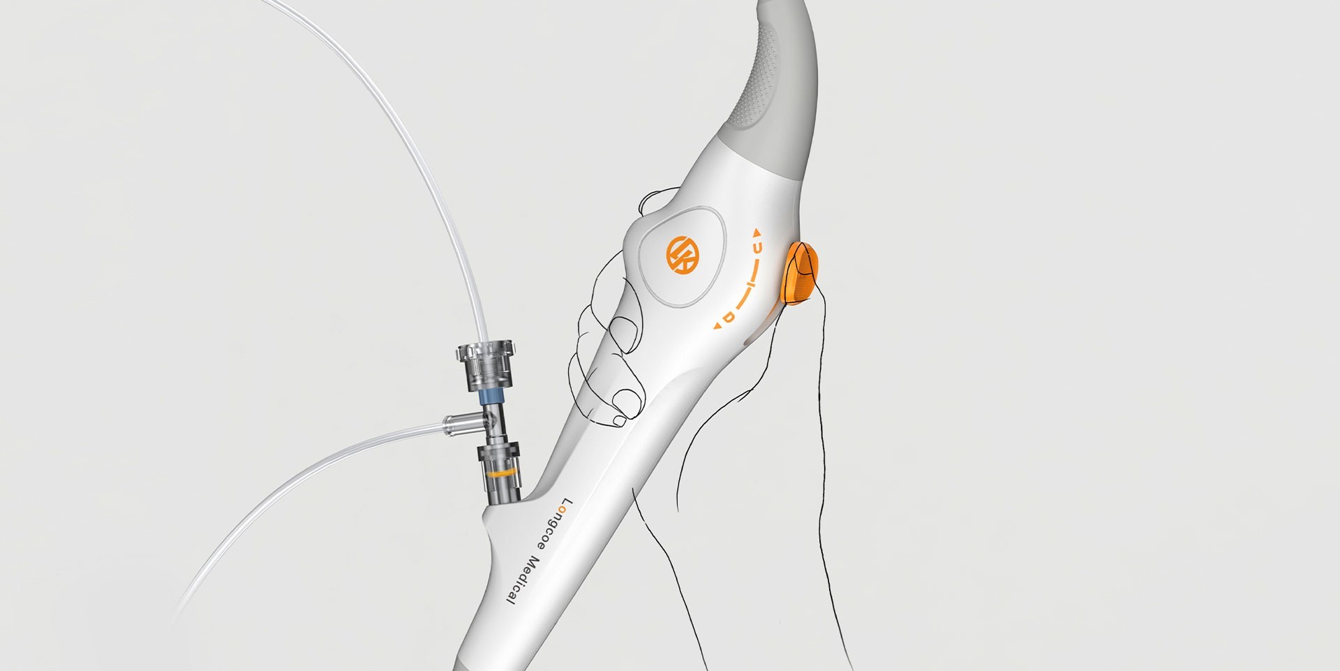 內窺鏡設備由手持式內窺鏡和顯示屏兩部分組成,手柄與圖像處理器協同工作;充分考慮人機工程學,同時適用兩種握持方式,撥動旋鈕可控制插入管狀態,尾端可旋轉,便于術者靈活切換手術操作姿勢。
